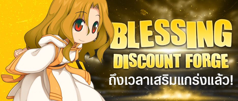 กิจกรรมใหม่ Blessing Discount Forge ถึงเวลาเสริมแกร่งแล้ว !! ที่จะให้เพื่อนๆ ผลักดันตัวละครของเพื่อนๆ ให้มีความเก่งมากยิ่งขึ้น