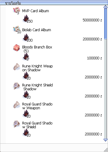 การแลกเปลี่ยน : Crystal of Sinful 5 ea , ใช้เงินจำนวน 100,000 zeny