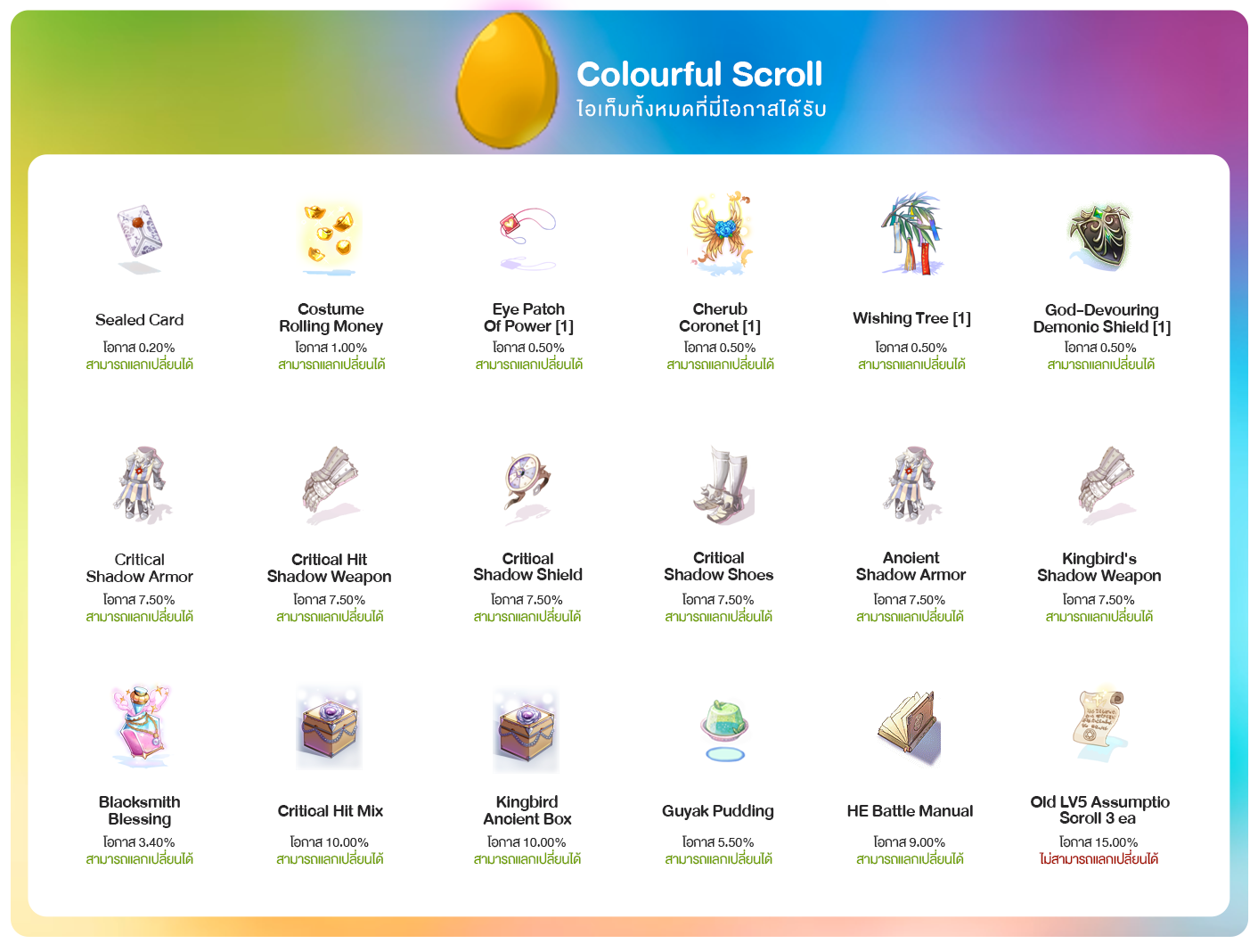 ลุ้นรับไอเทมสุดพิเศษมากมายกับไข่ Colourful Scroll !