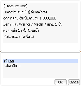 จะต้องใช้ Warrior's Medal 1 ea + เงิน 1,000,000 zeny ต่อการ สุ่ม 1 ครั้ง