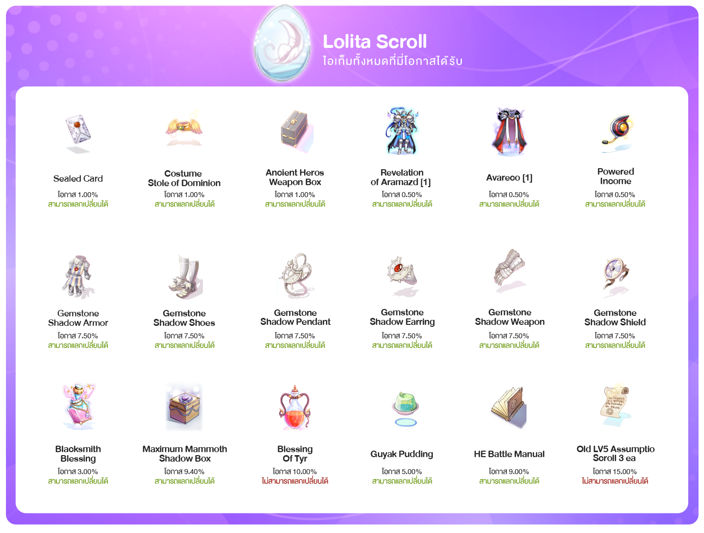 ลุ้นรับไอเทมสุดพิเศษมากมายกับไข่ Lolita Scroll !