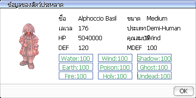 เมื่อกำจัด Alphoccio Basil จะมีโอกาสได้รับไอเทมดังนี้