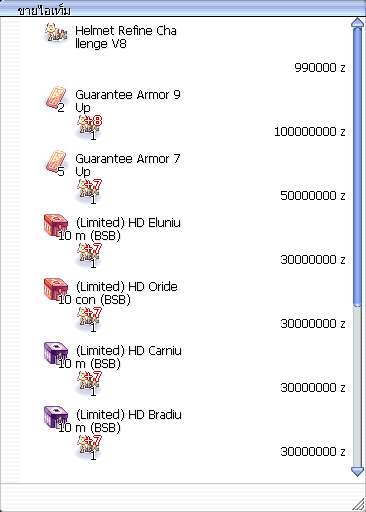 การแลกเปลี่ยน : +7 Helmet Refine Challenge V8 1 ea, ใช้เงินจำนวน 30,000,000 zeny