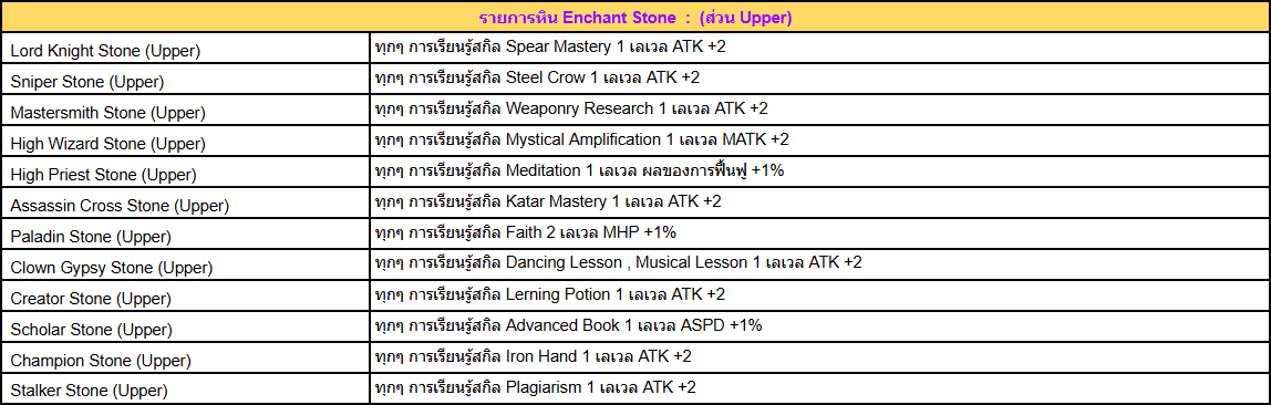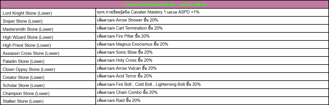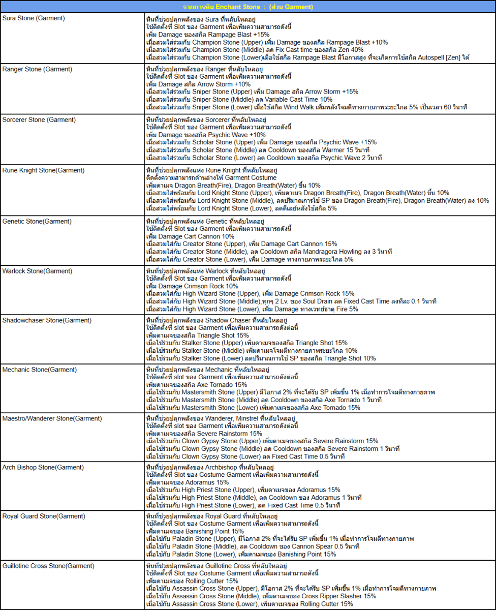 รายละเอียดกล่อง Class Enchant Stone Box I มีดังนี้