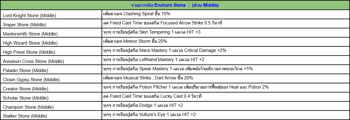 เมื่อเปิดกล่องจะมีโอกาสสุ่มได้รับ Enchant Stone 1 ชิ้น จากรายการดังนี้