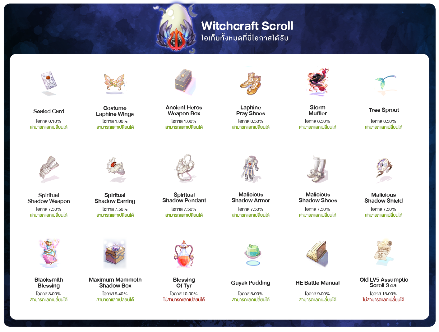 ของรางวัลที่อยู่ใน Witchcraft Scroll