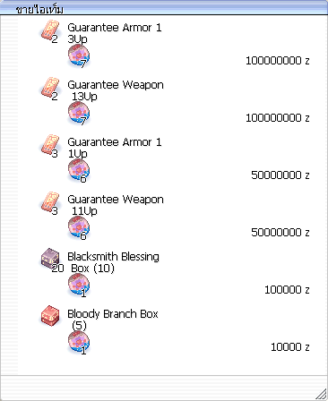 การแลกเปลี่ยน : Zeny Burning Ticket (NT) 1 ea, ใช้เงินจำนวน 100,000 zeny